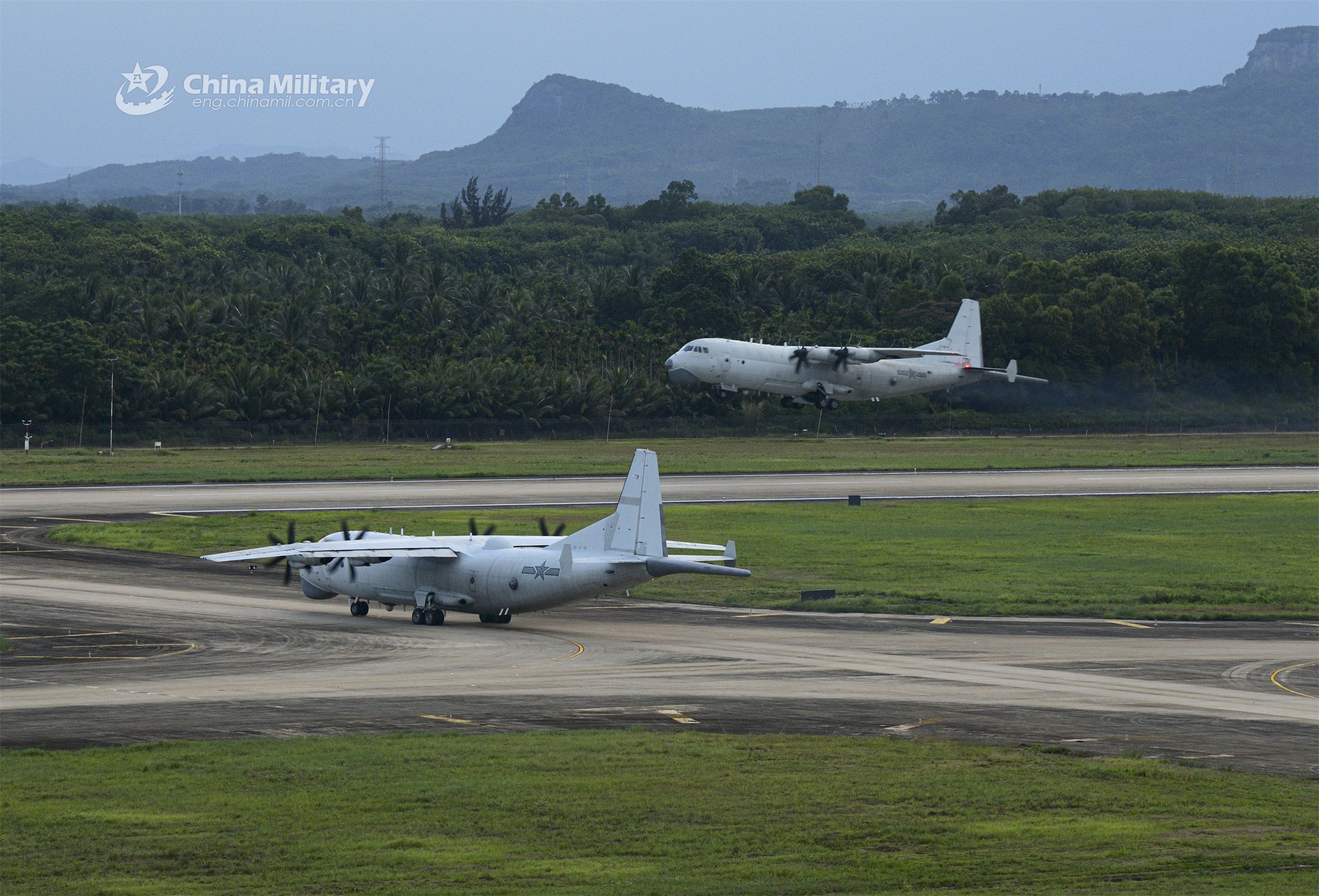Anti-submarine patrol aircraft attached to a naval aviation regiment under the PLA Southern Theater Command takes off for a round-the-clock training exercise in early July, 2023. (eng.chinamil.com.cn/Photo by Qin Qianjiang)