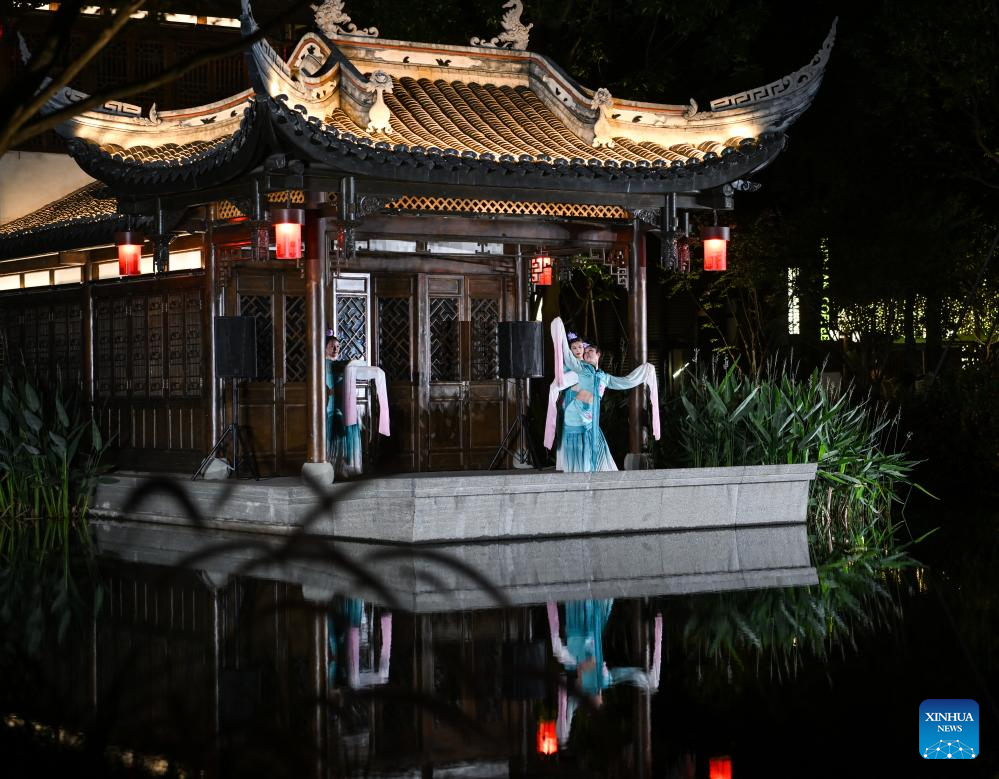 Artists perform at a tourism site in Chengdu of southwest China's Sichuan Province, on July 14, 2023. The 31st FISU Summer World University Games is scheduled to take place in Chengdu from July 28 to August 8, 2023. (Xinhua/Wang Xi)