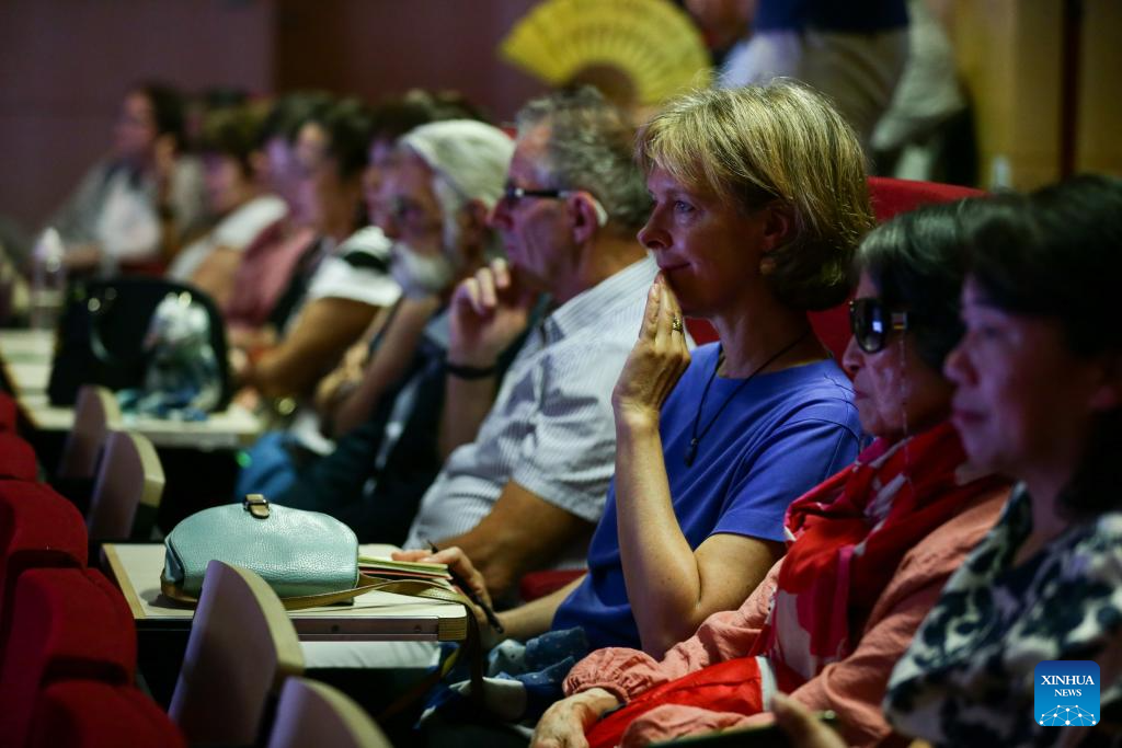 Audience attend a Chinese and European cultural dialogue at the China Cultural Center in Brussels, Belgium, July 14, 2023. (Xinhua/Zheng Huansong)