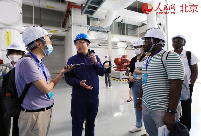 Members of the “Hello, Carbon Neutrality” research group visit Energy Station No. 6 at Beijing Gas, located in the Beijing Municipal Administrative Center. (People’s Daily Online/Yin Xingyun)