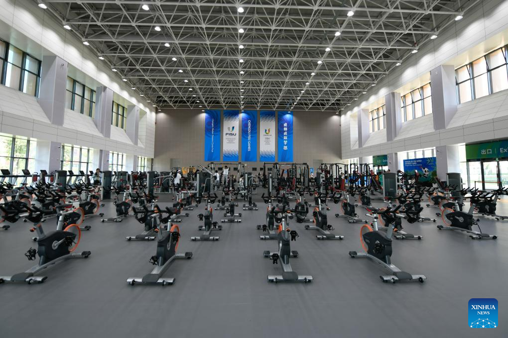 Photo taken on July 16, 2023 shows the Fitness Centre of the Universiade Village, Chengdu, southwest China's Sichuan Province. (Xinhua/Xu Bingjie)