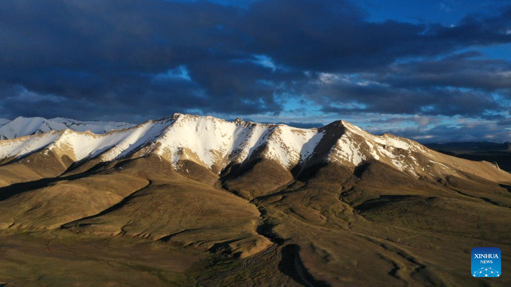 This aerial photo taken on July 8, 2023 shows snow mountains in the Altun Mountains National Nature Reserve in northwest China's Xinjiang Uygur Autonomous Region. With an average altitude of 4,580 meters, the Altun Mountains National Nature Reserve covers a total area of 45,000 square kilometers and is a representative of plateau desert ecosystem in China. (Xinhua/Wang Peng)