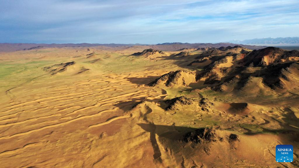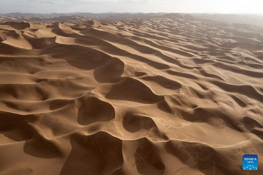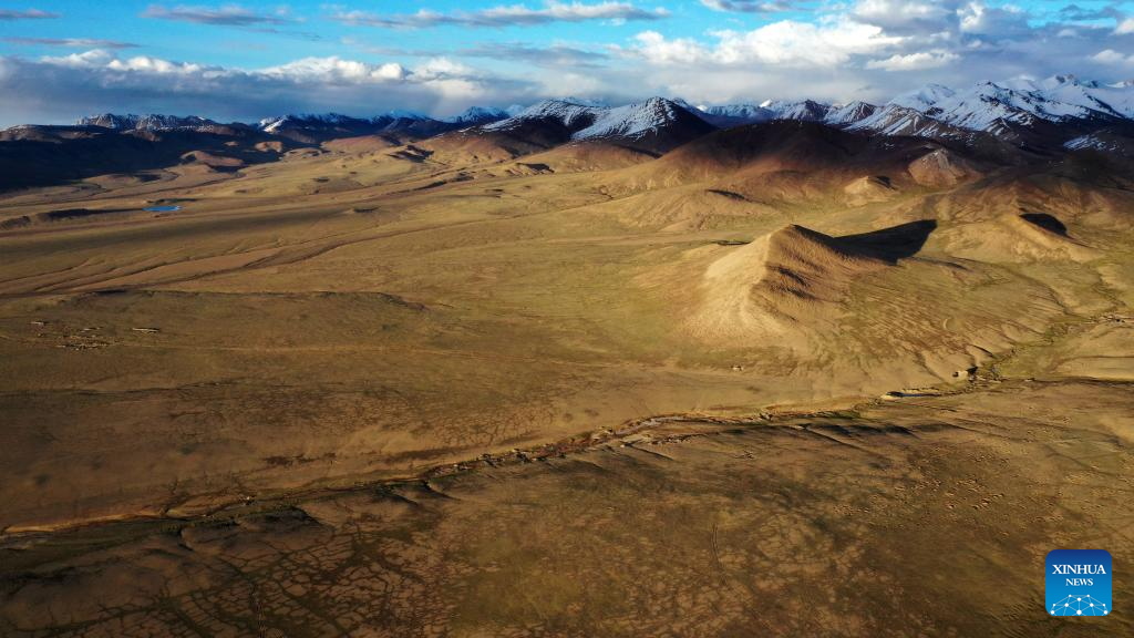 This aerial photo taken on June 30, 2023 shows a desert in the Altun Mountains National Nature Reserve in northwest China's Xinjiang Uygur Autonomous Region. With an average altitude of 4,580 meters, the Altun Mountains National Nature Reserve covers a total area of 45,000 square kilometers and is a representative of plateau desert ecosystem in China. (Xinhua/Cai Yang)