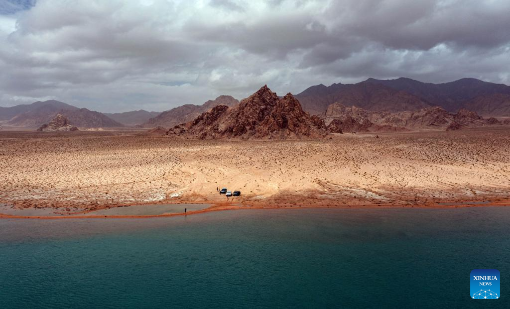 This aerial photo taken on July 5, 2023 shows a lake in the Altun Mountains National Nature Reserve in northwest China's Xinjiang Uygur Autonomous Region. With an average altitude of 4,580 meters, the Altun Mountains National Nature Reserve covers a total area of 45,000 square kilometers and is a representative of plateau desert ecosystem in China. (Xinhua/Wang Peng)
