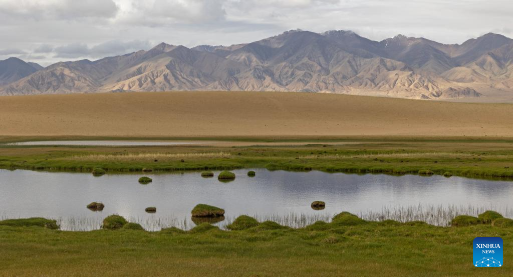 This photo taken on July 1, 2023 shows a wetland in the Altun Mountains National Nature Reserve in northwest China's Xinjiang Uygur Autonomous Region. With an average altitude of 4,580 meters, the Altun Mountains National Nature Reserve covers a total area of 45,000 square kilometers and is a representative of plateau desert ecosystem in China. (Xinhua/Cai Yang)