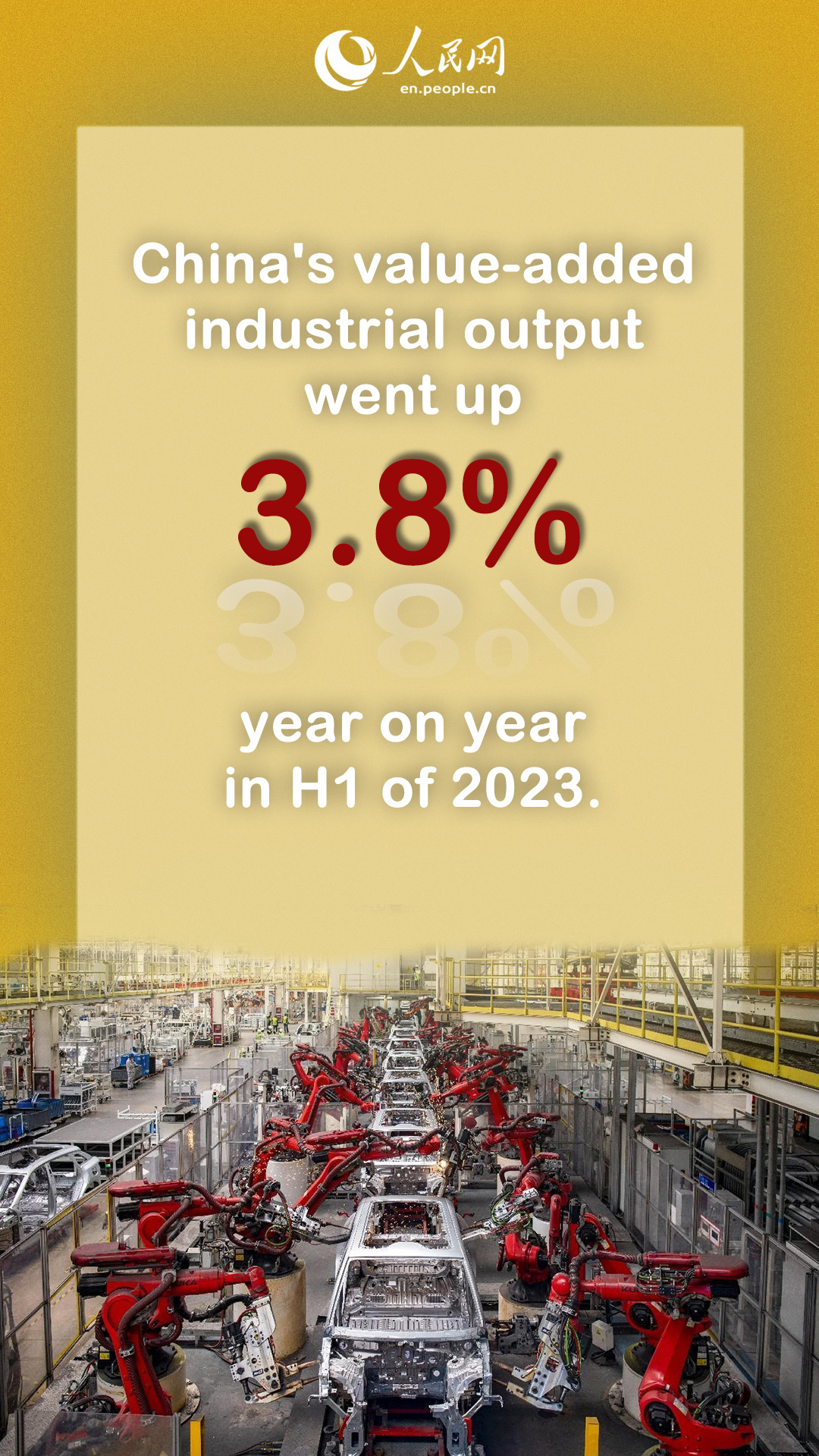 China's value-added industrial output went up 3.8 percent year on year in H1.