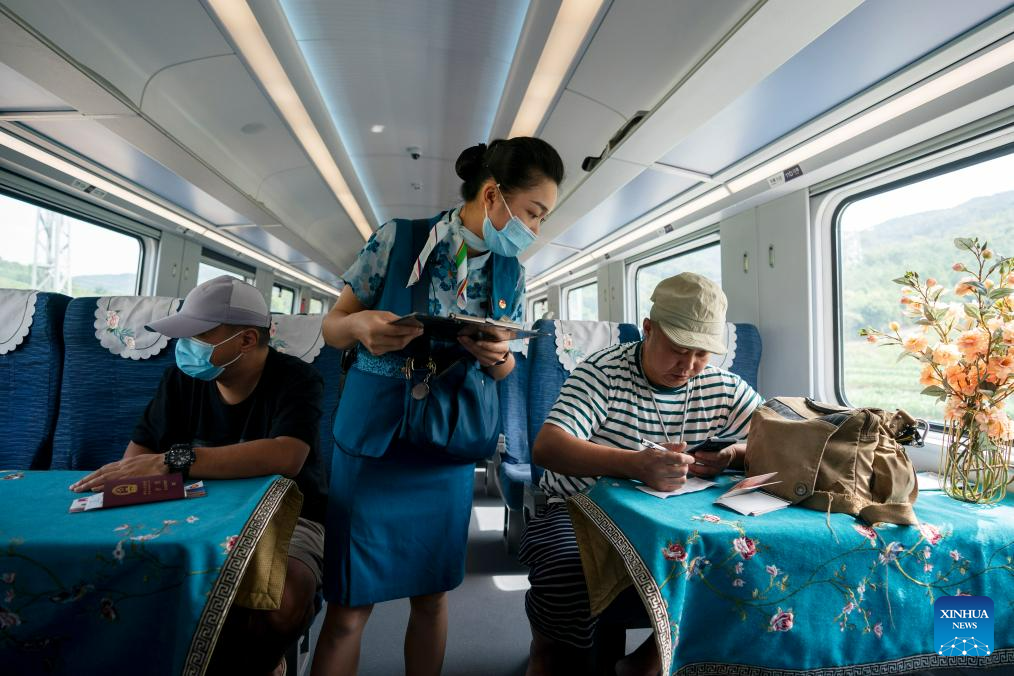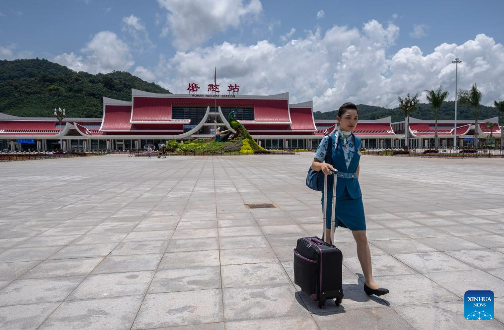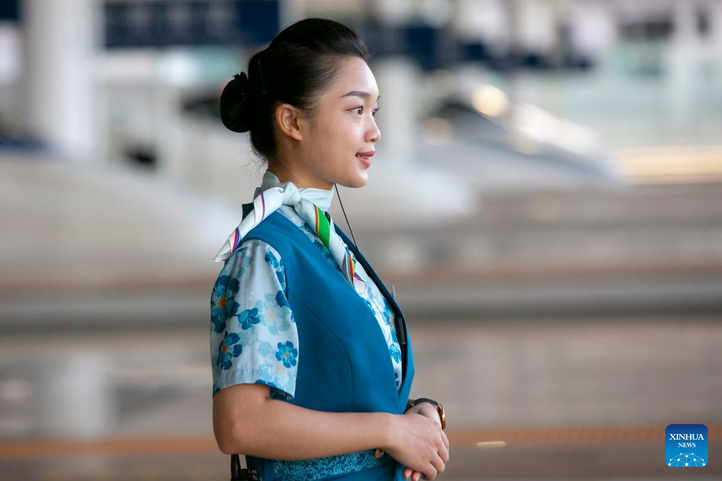 Yi Bofeng hails from Mengla County in Yunnan Province. After graduating as a Lao major from a technical college in the provincial capital Kunming in 2020, she was recruited as a train attendant under China Railway Kunming Bureau Group Co., Ltd.