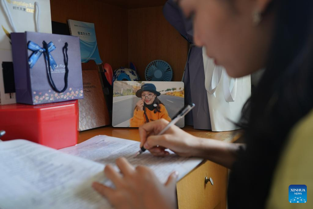 Yi Bofeng learns Lao language at home in Kunming, southwest China's Yunnan Province, July 15, 2023. (Xinhua/Chen Xinbo)