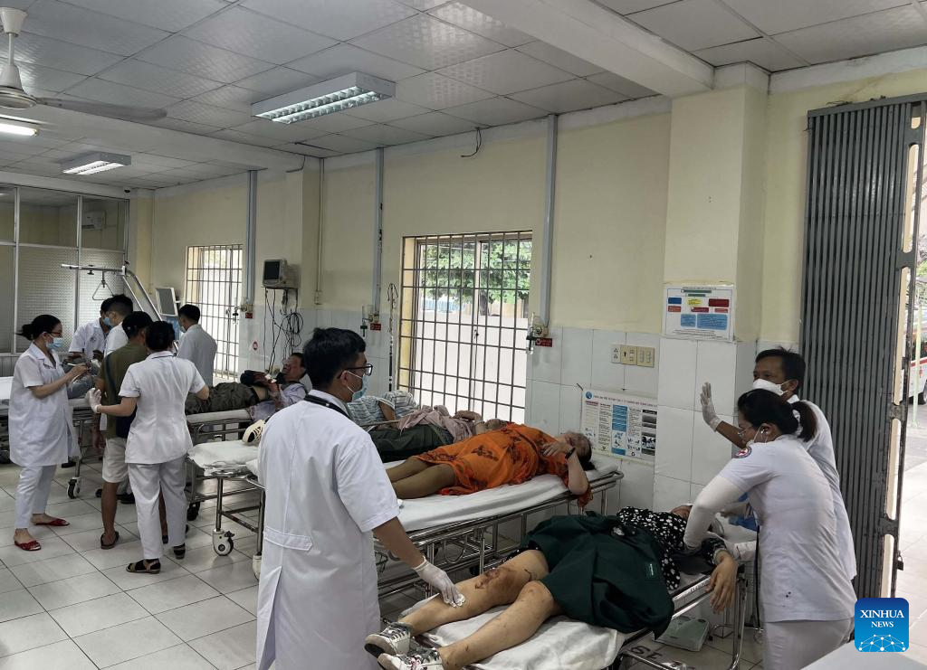 Injured people receive medical treatment at a hospital in Vietnam's central Khanh Hoa province, July 18, 2023.?(VNA/Handout via Xinhua)