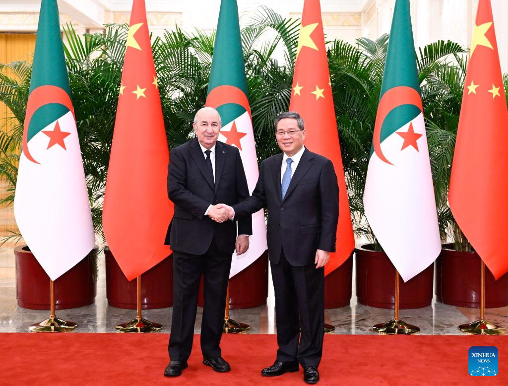BEIJING, July 19 (Xinhua) -- China and Algeria should expand cooperation in emerging areas such as information technology, digital economy, new energy vehicles, and space satellites and set an example for high-tech cooperation among developing countries, Chinese Premier Li Qiang said on Wednesday.