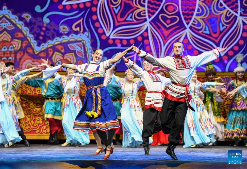 Russian actors perform during the opening ceremony of the 6th China Xinjiang International Dance Festival in Urumqi, northwest China's Xinjiang Uygur Autonomous Region, July 20, 2023. (Xinhua/Hu Huhu)