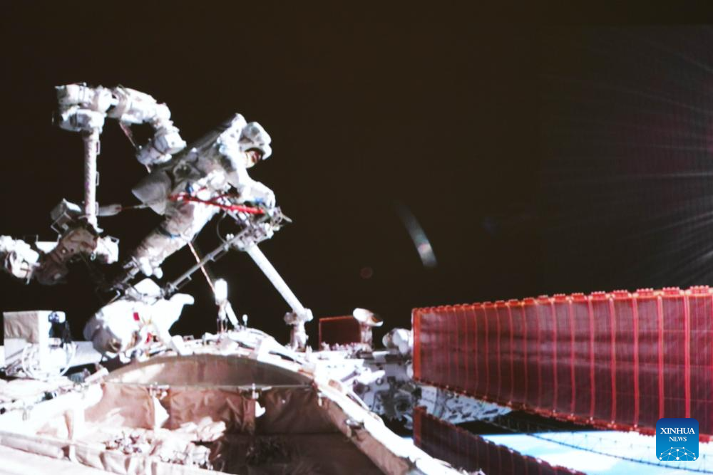BEIJING, July 20 (Xinhua) -- The Shenzhou-16 crew members on board China's orbiting space station completed their first spacewalk at 9:40 p.m. (Beijing Time) on Thursday, according to the China Manned Space Agency.