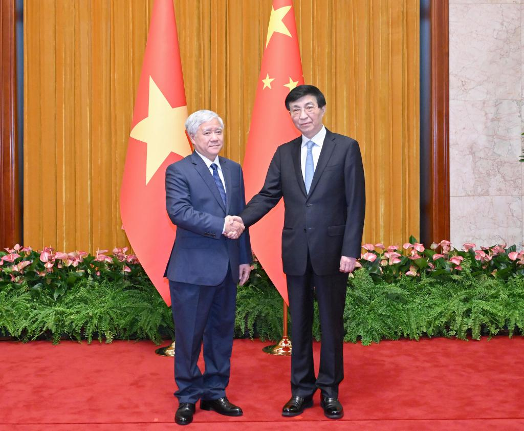 Wang Huning, a member of the Standing Committee of the Political Bureau of the Communist Party of China Central Committee and chairman of the Chinese People's Political Consultative Conference National Committee, meets with President of the Vietnam Fatherland Front (VFF) Central Committee Do Van Chien in Beijing, capital of China, July 20, 2023. (Xinhua/Yue Yuewei)