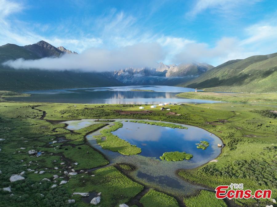 Picturesque summer scenery of Nianbaoyuze Mountain Scenic Resort in Jiuzhi County, Golog Tibetan Autonomous Prefecture, northwest China's Qinghai Province, July 19, 2023. (Photo: China News Service/Ma Mingyan)