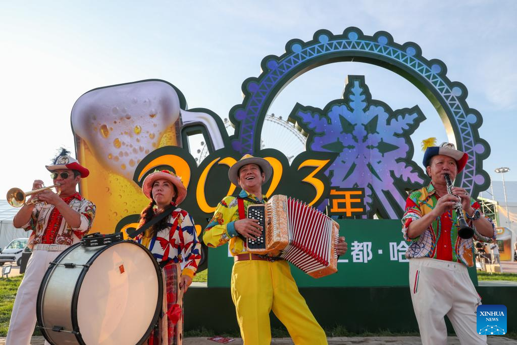Artists perform at the 21th China Harbin International Beer Festival in Harbin, capital of northeast China's Heilongjiang Province, July 20, 2023. The 21th China Harbin International Beer Festival opened here on Thursday. (Xinhua/Zhang Tao)