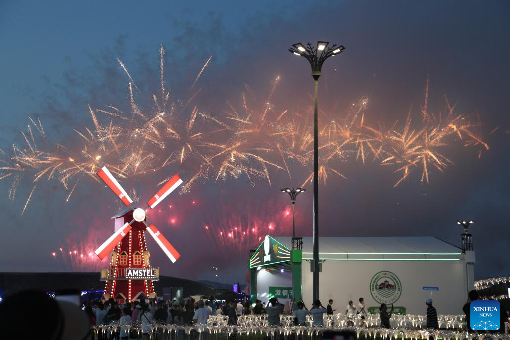 Visitors watch a fireworks show at the 21th China Harbin International Beer Festival in Harbin, capital of northeast China's Heilongjiang Province, July 20, 2023. The 21th China Harbin International Beer Festival opened here on Thursday. (Xinhua/Zhang Tao)