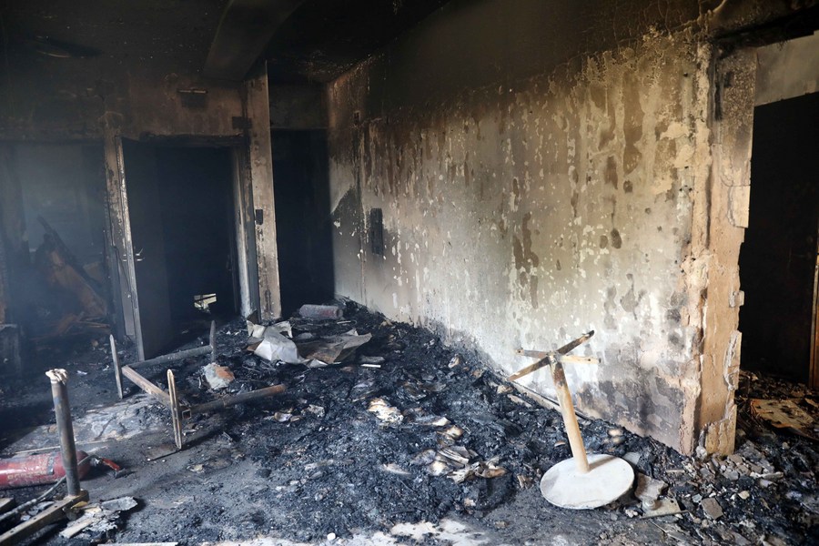 This photo taken on July 20, 2023 shows the damaged Swedish embassy in Baghdad, Iraq. (Xinhua/Khalil Dawood)