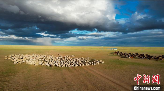 A photo captures a scene during the livestock transfer to a summer pasture in Xilingol League, north China's Inner Mongolia Autonomous Region. (Chinanews.com/Cui Boqun)