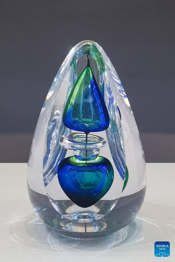 This photo taken on July 15, 2023 shows a glass artwork presented by Montpellier to Chengdu.