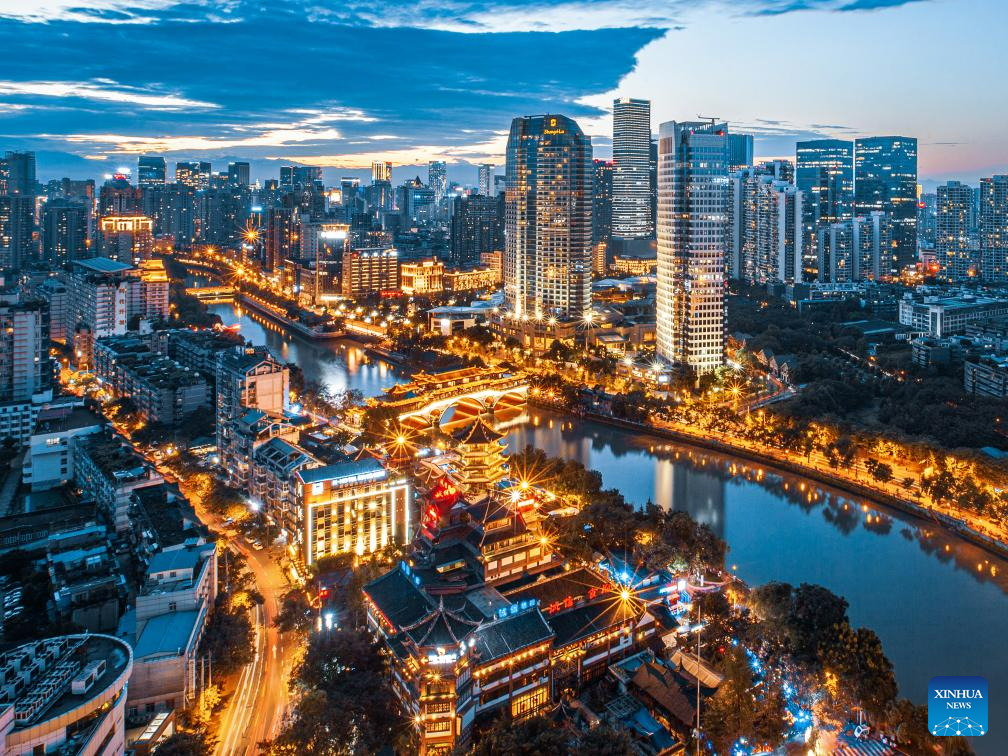 This undated photo shows a night view in Chengdu, southwest China's Sichuan Province.