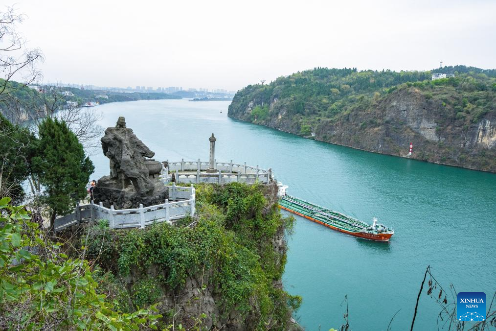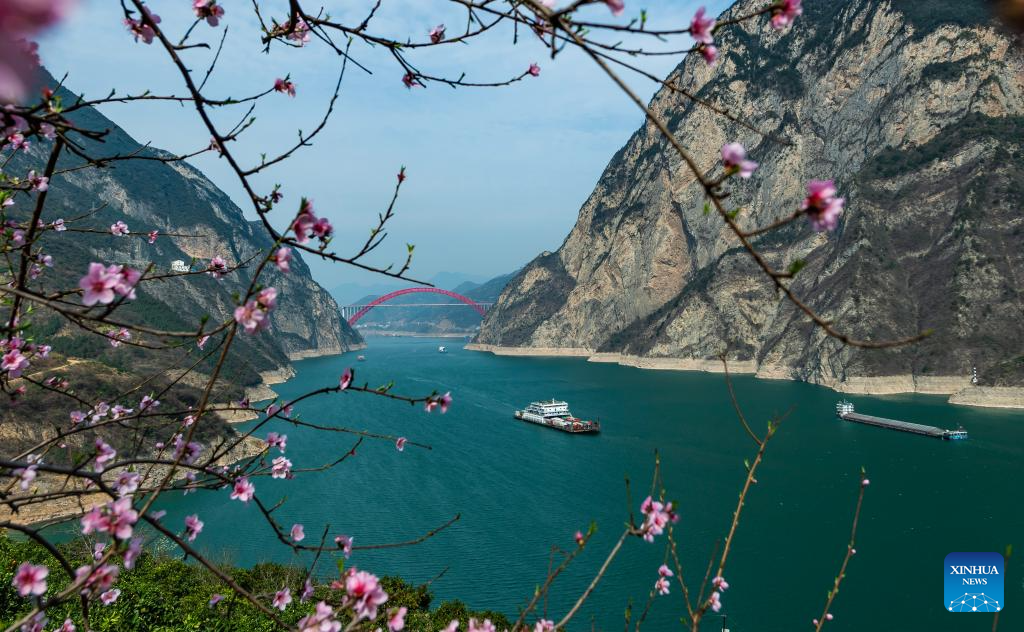 This photo taken on March 28, 2023 shows the scenery of Xiling Gorge, one of the Three Gorges on the Yangtze River, in central China's Hubei Province. Located in the upper reaches of the Yangtze River, the Three Gorges Reservoir area is an important ecological function zone and reservoir of freshwater resources in China.