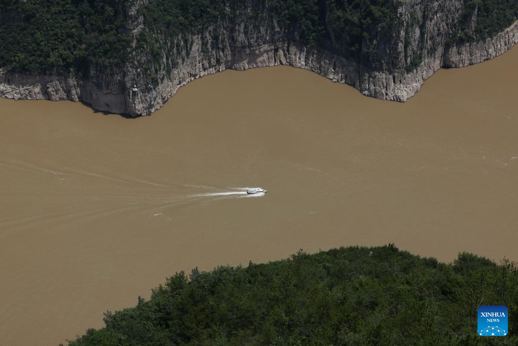 This photo taken on June 30, 2023 shows the scenery of Wuxia Gorge, one of the Three Gorges on the Yangtze River, in southwest China's Chongqing Municipality. Located in the upper reaches of the Yangtze River, the Three Gorges Reservoir area is an important ecological function zone and reservoir of freshwater resources in China.