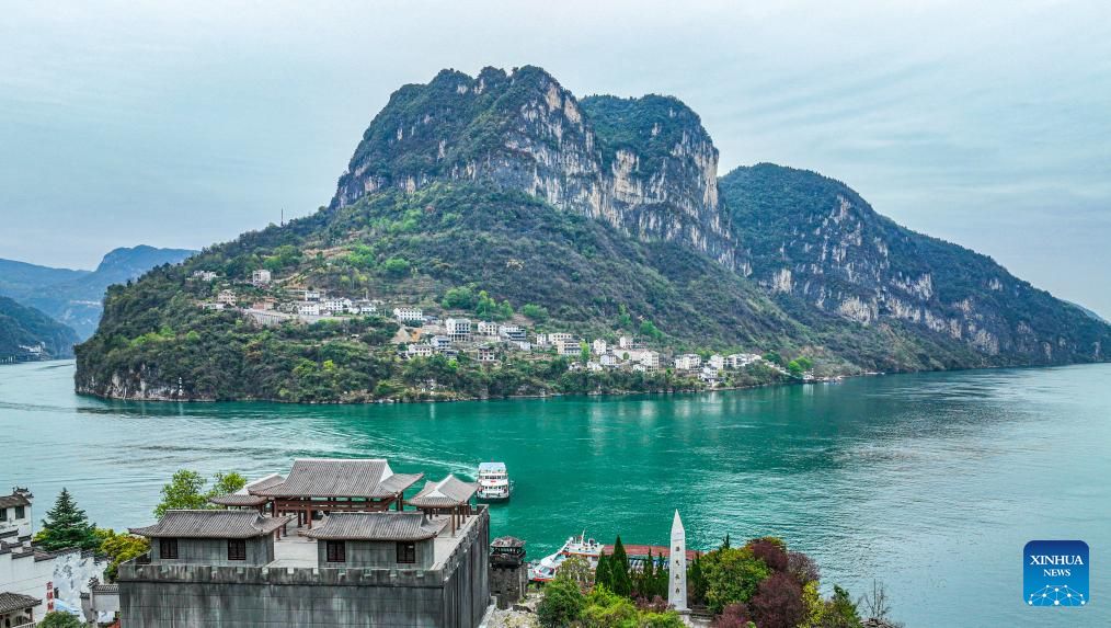 This photo taken on March 29, 2023 shows the scenery of Xiling Gorge, one of the Three Gorges on the Yangtze River, in central China's Hubei Province. Located in the upper reaches of the Yangtze River, the Three Gorges Reservoir area is an important ecological function zone and reservoir of freshwater resources in China.