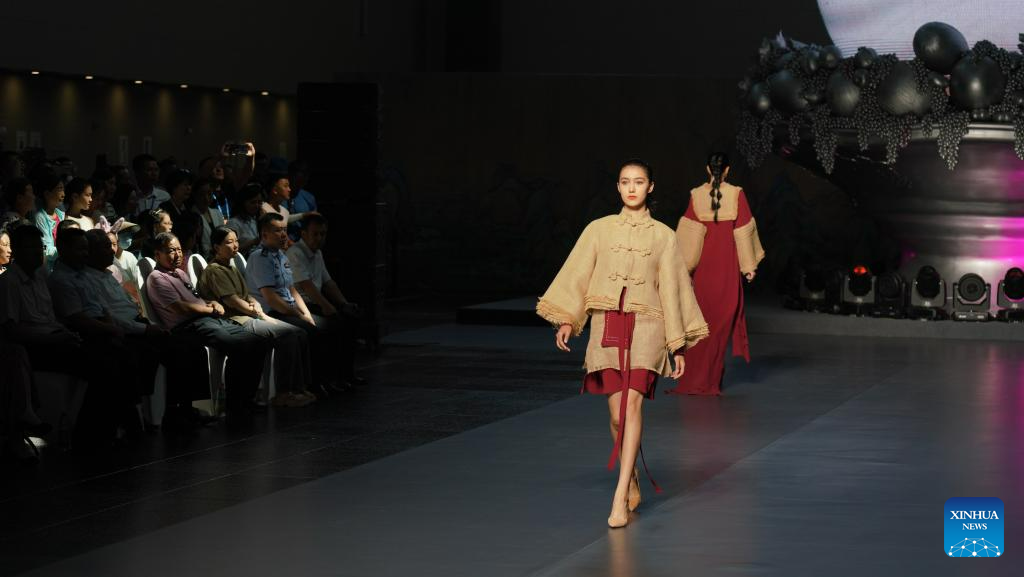 Models present creations during a fashion show on the sidelines of the 6th China Xinjiang International Dance Festival, in Urumqi, northwest China's Xinjiang Uygur Autonomous Region, July 22, 2023. (Xinhua/Zhang Xiaocheng)