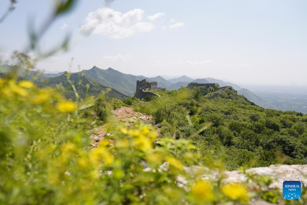 This aerial photo taken on July 23, 2023 shows the scenery of the Baiyangyu section of the Great Wall in Qian'an City of north China's Hebei Province. (Xinhua/Mu Yu)