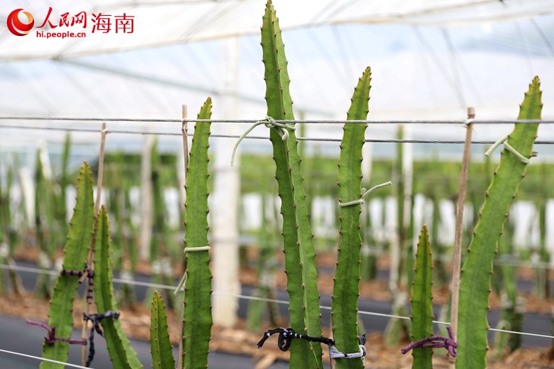 Seedlings of yellow pitaya at a planting base in Qiongzhong Li and Miao autonomous county, south China's Hainan Province. (People's Daily Online/Meng Fansheng)