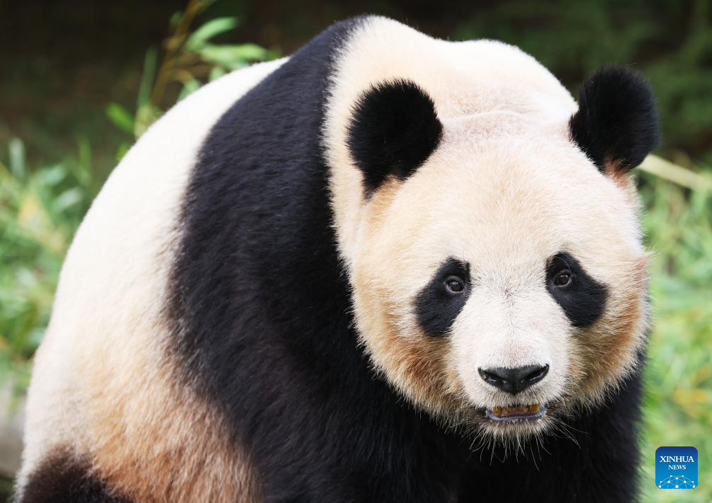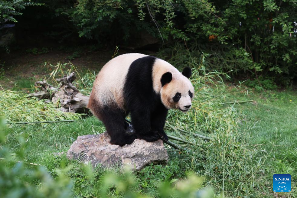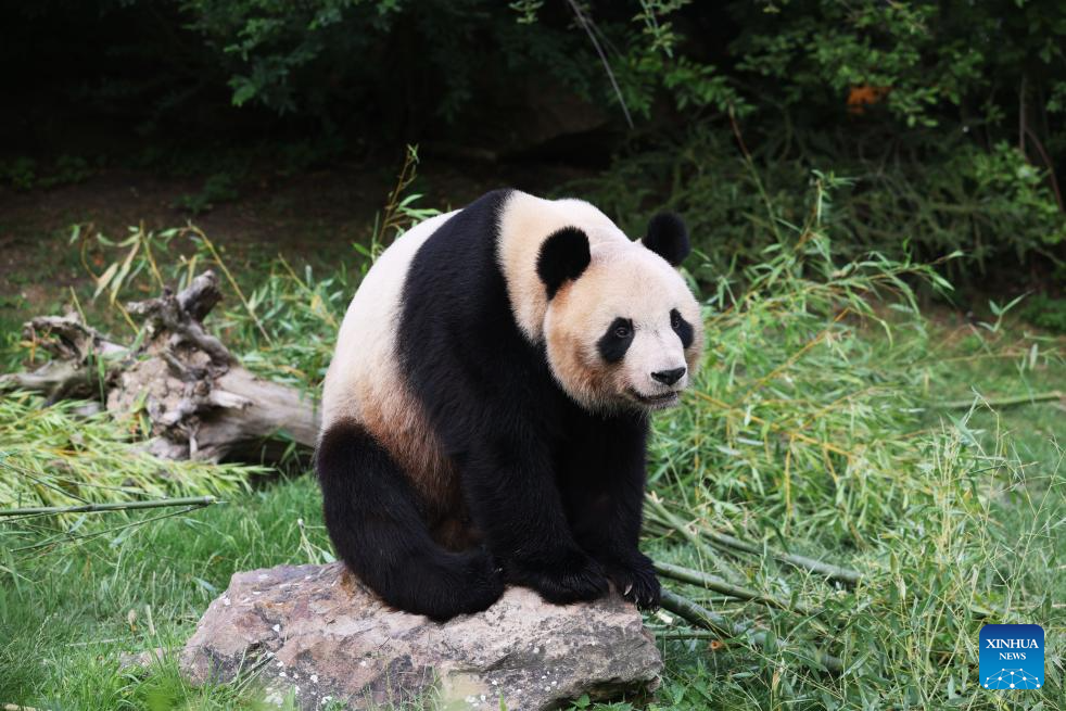 This photo taken on July 24, 2023 shows the giant panda Yuan Meng at Beauval Zoo in Saint-Aignan, France. Yuan Meng, the first giant panda born in France in 2017, will return to China on Tuesday. (Xinhua/Gao Jing)