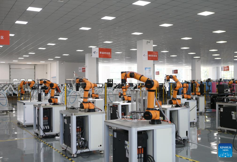 Robots are pictured at a robotics company in Linzi District of Zibo City, east China's Shandong Province, July 25, 2023.?(Xinhua/Zhang Haobo)