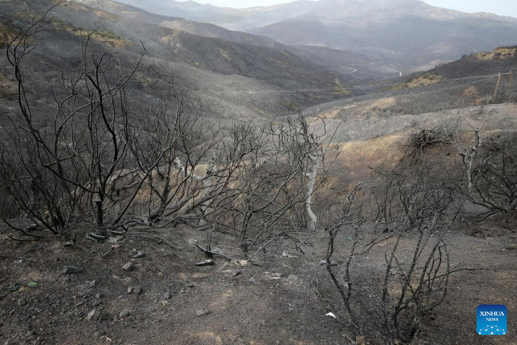 Photo taken on July 25, 2023 shows an area burned in a wildfire in Bejaia Province, Algeria. The death toll from wildfires in northern Algeria has risen to 34, including 10 soldiers, the Interior Ministry said in an update on Monday. The fires started overnight on Sunday mainly in the provinces of Bejaia, Jijel, and Bouira, but quickly spread due to strong winds, causing significant damage. (Xinhua)