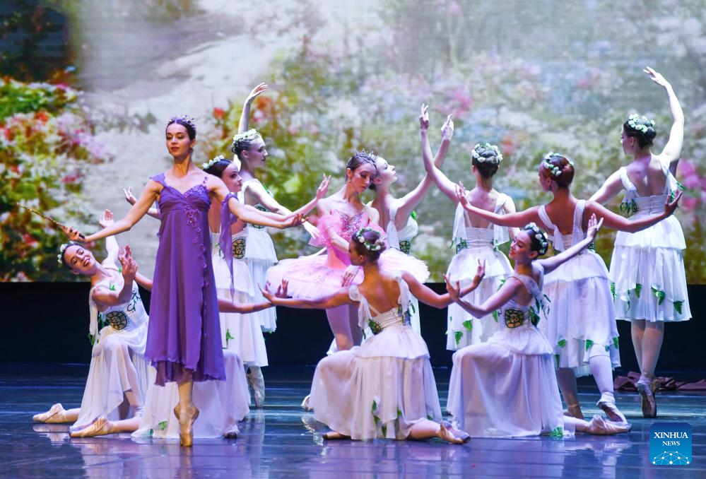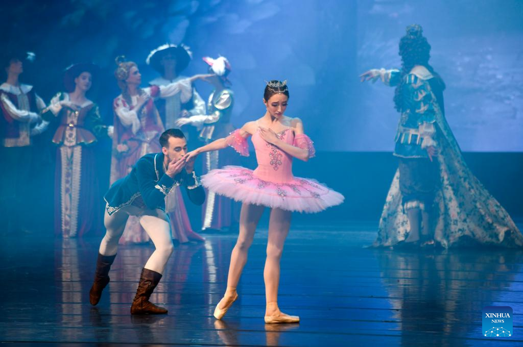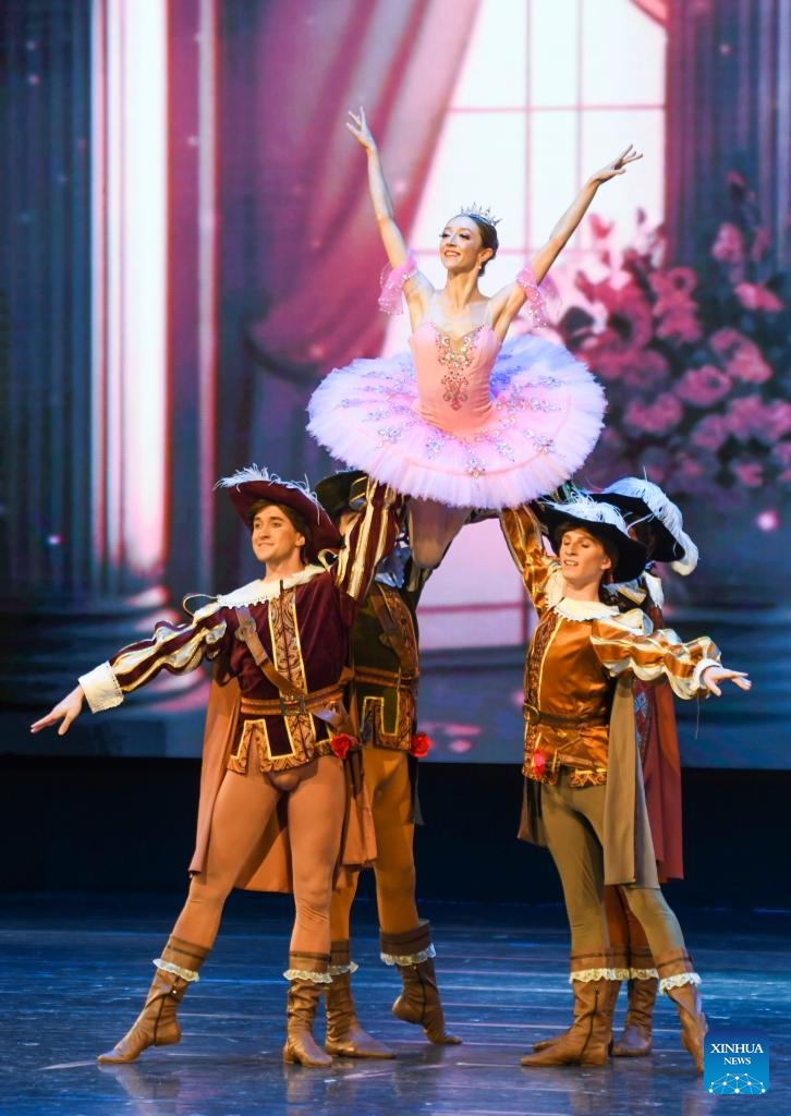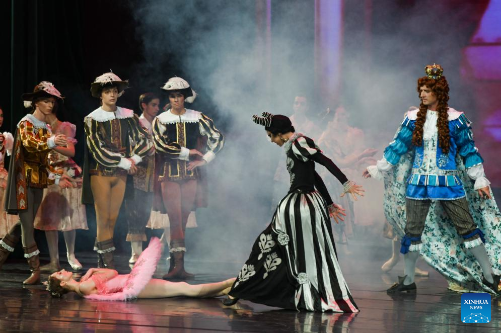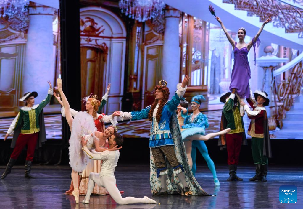 Dancers from the ballet troupe of the national grand theater of Belarus perform in the ballet "Sleeping Beauty" during the 6th China Xinjiang International Dance Festival in Urumqi, northwest China's Xinjiang Uygur Autonomous Region, July 25, 2023. (Xinhua/Wang Fei)