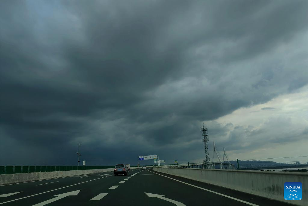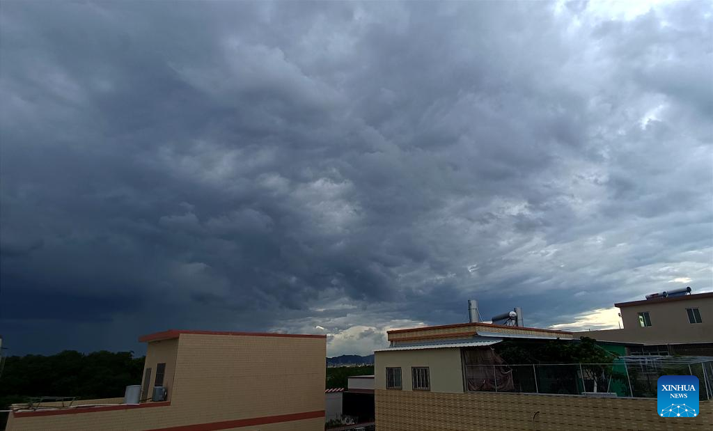 This photo taken on July 27, 2023 shows dark clouds in the border area between Chaozhou and Shantou cities in south China's Guangdong Province. (Xinhua/Lu Hanxin)