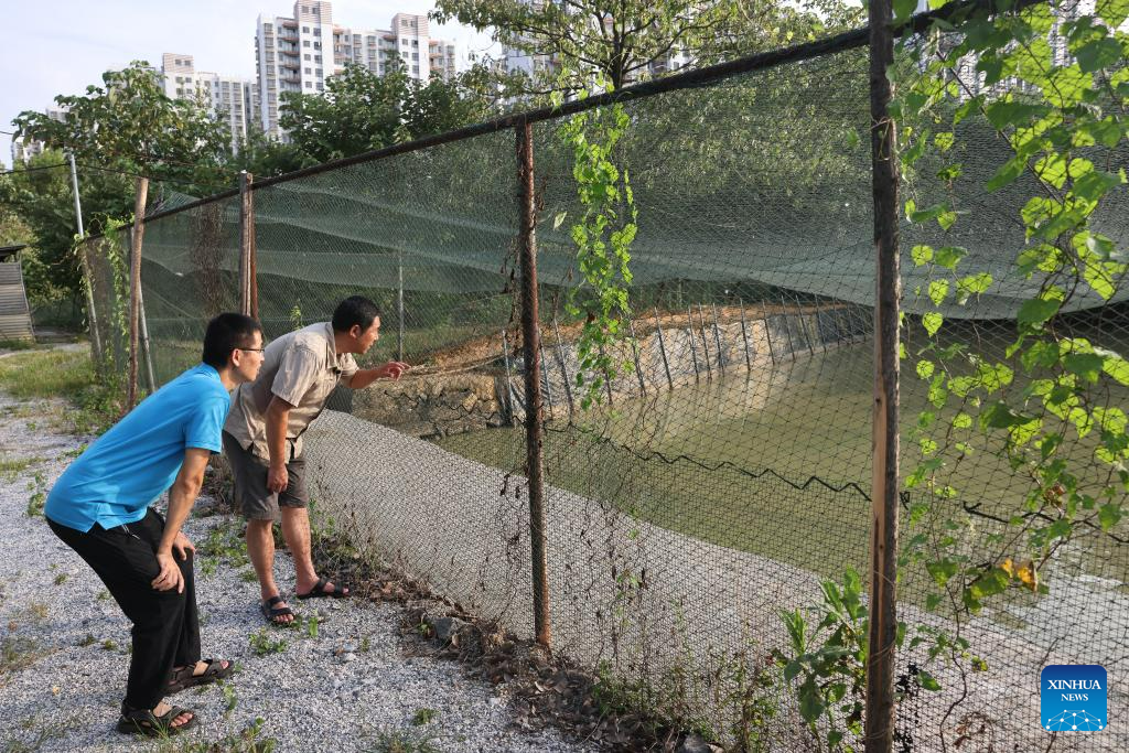 Staff members watch migratory birds in the Wildlife Rescue and Breeding Center of Jiangxi Province in Nanchang, east China's Jiangxi Province, July 16, 2023. Staff members composed of rescuers, doctors, patrolmen and police officers in the protection station of Poyang Lake National Nature Reserve and the Wildlife Rescue and Breeding Center of Jiangxi Province rescue injured migratory birds and help them return to the wild. (Xinhua/Jin Liwang)