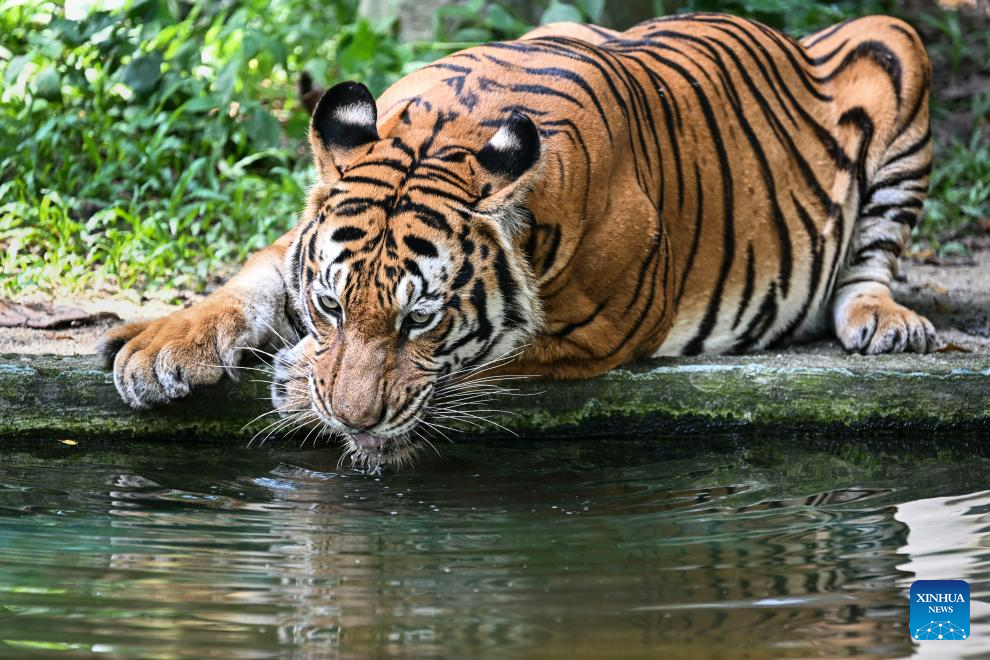 A Malayan tiger drinks water at Zoo Negara near Kuala Lumpur, Malaysia, July 23, 2023. The International Tiger Day is marked on July 29 every year. (Xinhua/Cheng Yiheng)
