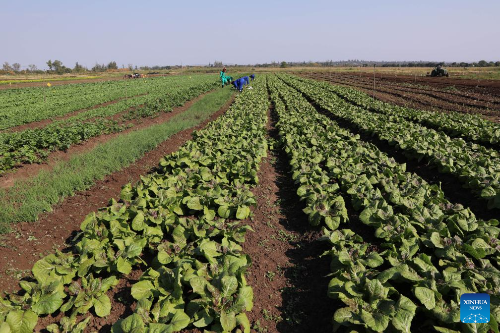 This photo taken on July 28, 2023 shows the experimental field of the China-Mozambique Agricultural Technology Demonstration Center in Boane, Maputo Province, Mozambique. Built in 2010, the demonstration center is an important cooperation project between the Chinese and Mozambican governments. Apart from doing agricultural experiments, the center is also involved in the training of local farmers. (Xinhua/Dong Jianghui)