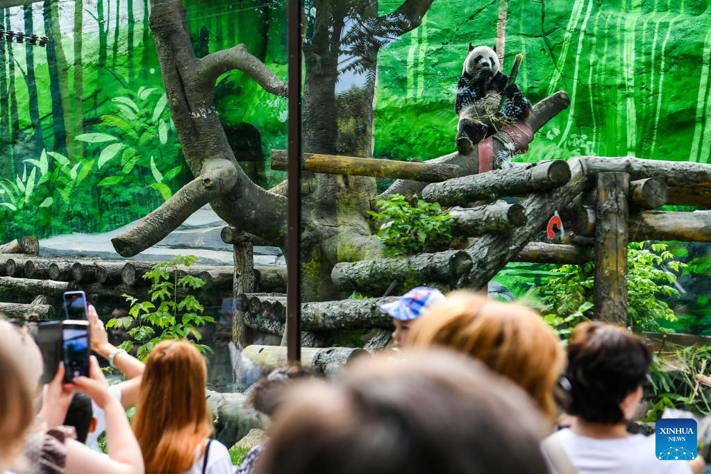 Giant panda Dingding is seen during her birthday celebration at the Moscow Zoo in Moscow, capital of Russia, July 30, 2023. Two giant pandas from China, Ruyi and Dingding, who have been living at the Moscow Zoo since 2019, enjoyed their birthday celebrations in Russia on Sunday. (Xinhua/Cao Yang)