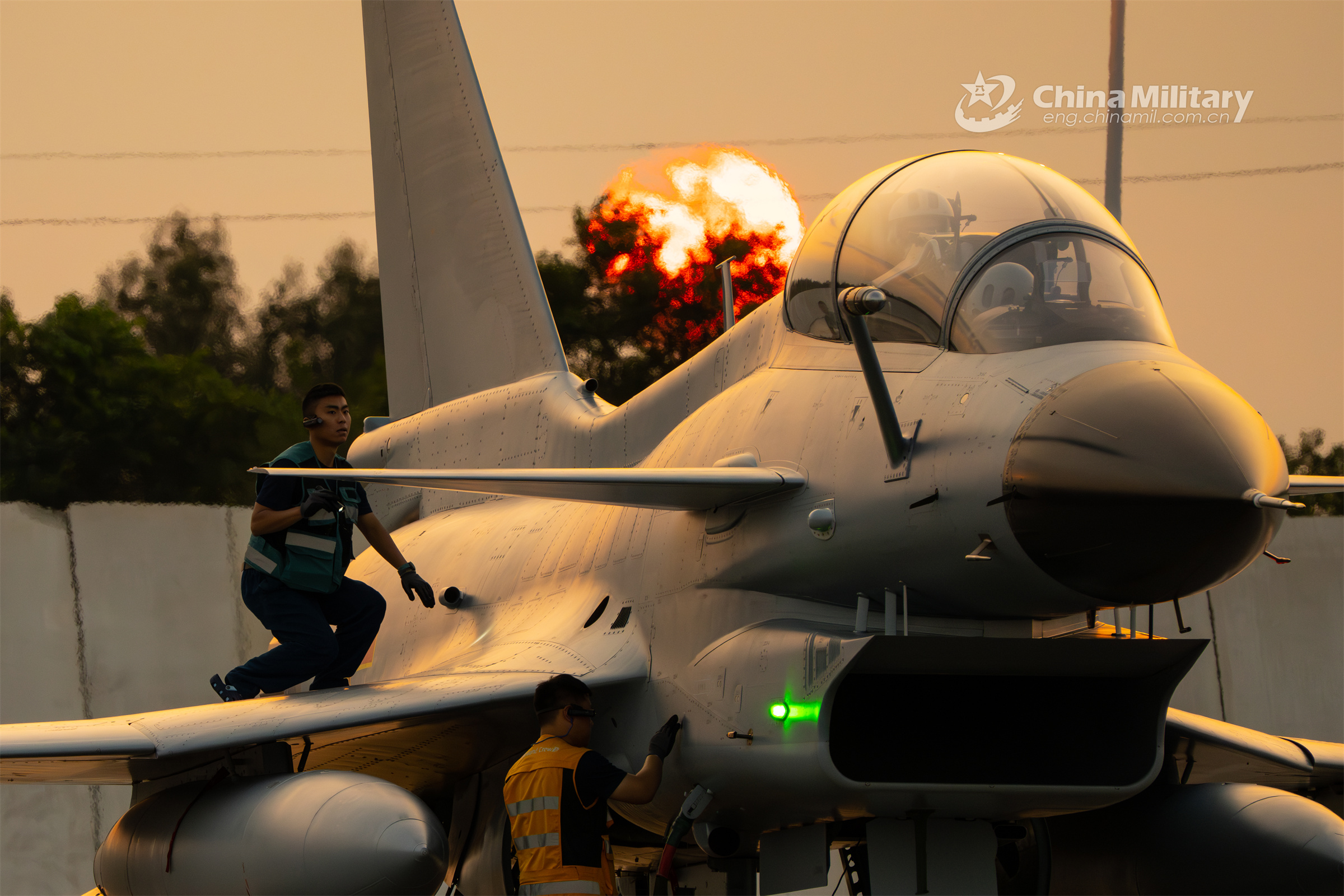 A J-10 fighter jet attached to an aviation brigade of the air force under the PLA Southern Theater Command taxies onto the flightline before takeoff during a recent flight training exercise. (eng.chinamil.com.cn/Photo by Hou Kaiwen)