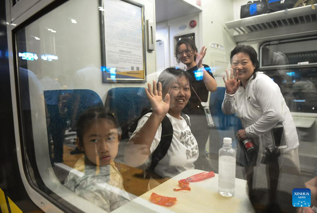 Passengers of Train K396 arrive at the Beijing Fengtai Railway Station after transfer in Beijing, capital of China, Aug. 2, 2023. Train passengers trapped in Mentougou District due to heavy rainfall have been safely transferred on Wednesday. (Xinhua/Chen Zhonghao)