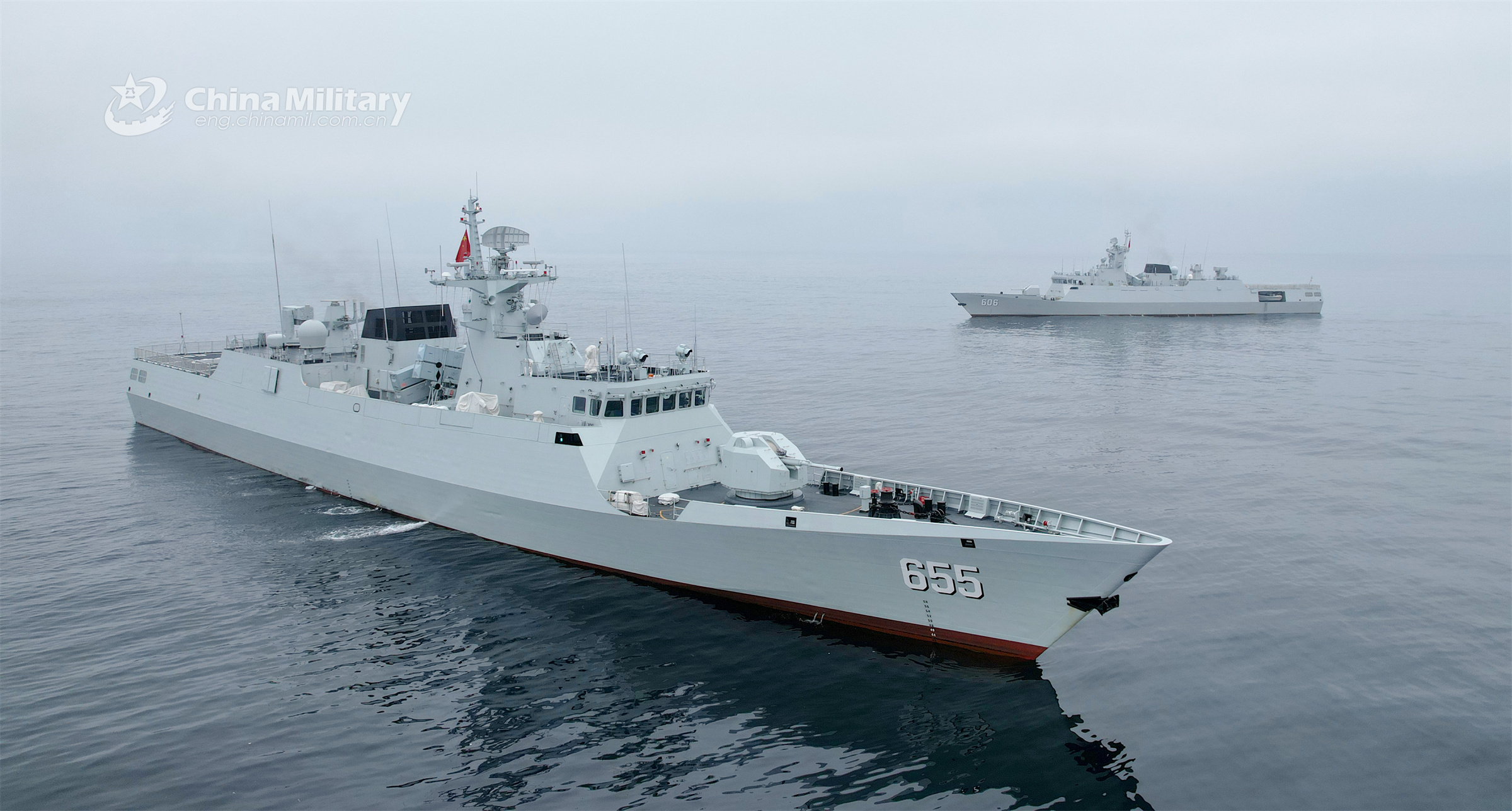 Frigates attached to a flotilla under the PLA Northern Theater Command conduct temporary inspection, visit, board, search and seizure (VBSS) training during a real-combat training exercise in late July, 2023. (eng.chinamil.com.cn/Photo by Li Kang)