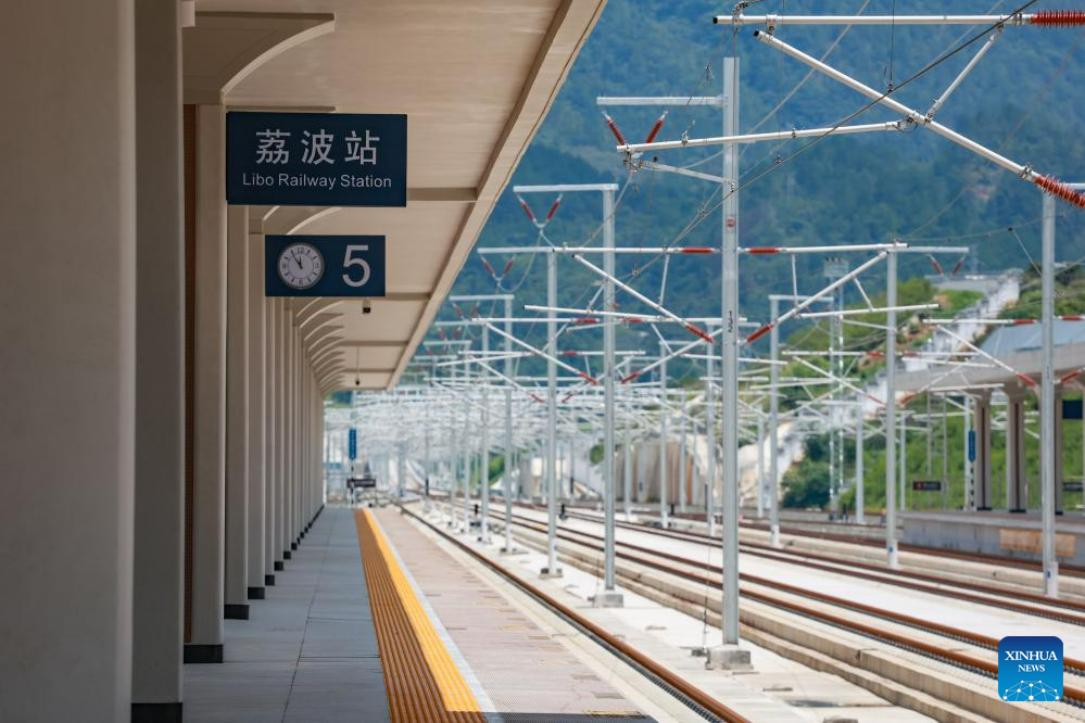This photo taken on Aug. 3, 2023 shows a platform of the Libo Railway Station in Libo, southwest China's Guizhou Province. (Xinhua/Liu Xu)