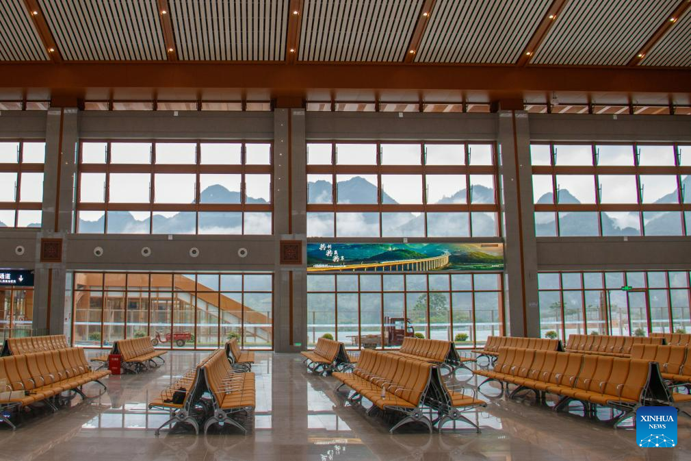 This photo taken on Aug. 3, 2023 shows an interior view of the Libo Railway Station in Libo, southwest China's Guizhou Province. (Xinhua/Liu Xu)