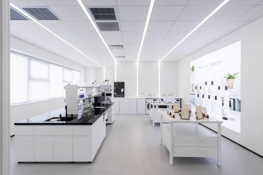 This photo taken on July 25, 2023 shows a lab of THE LAUNDRESS, a high-end fabric care laundry brand affiliated with the global consumer goods giant Unilever, in north China's Tianjin. (Xinhua)