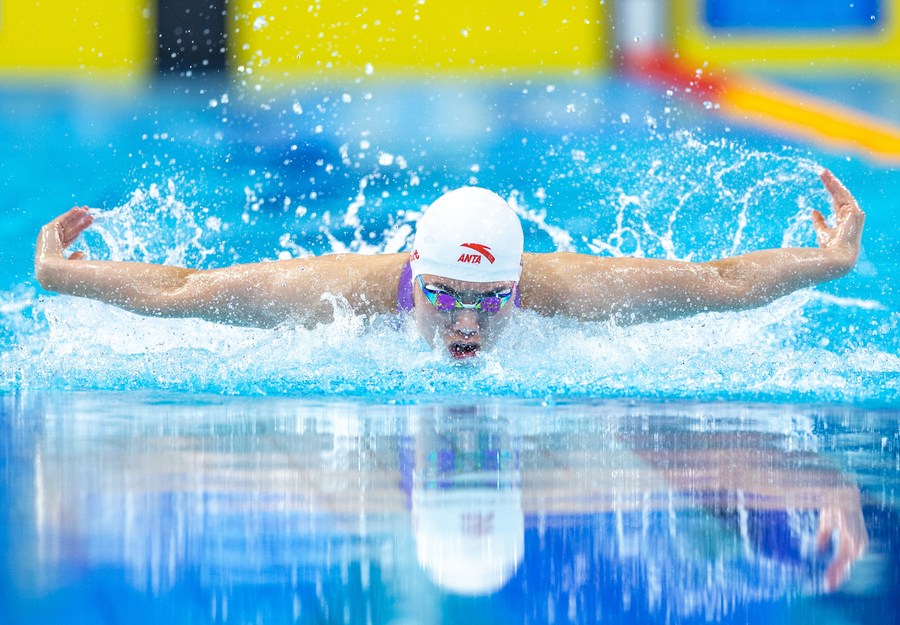 Zhang Yufei of China competes in the women's 100m butterfly final at the Chengdu Universiade, August 5, 2023. (Xinhua/Huang Wei)