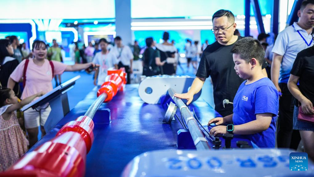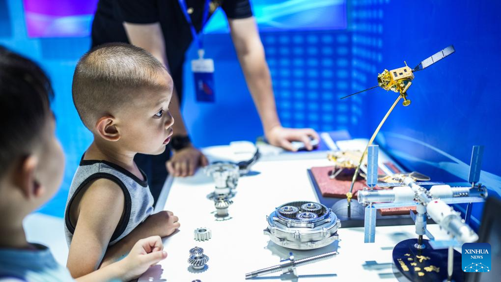 A child visits the venue of the first Guizhou Science and Technology Festival in Guiyang, southwest China's Guizhou Province, Aug. 5, 2023. The first Guizhou Science and Technology Festival kicked off at Guiyang International Conference and Exhibition Center on Saturday and will last till Aug. 9. (Xinhua/Tao Liang)