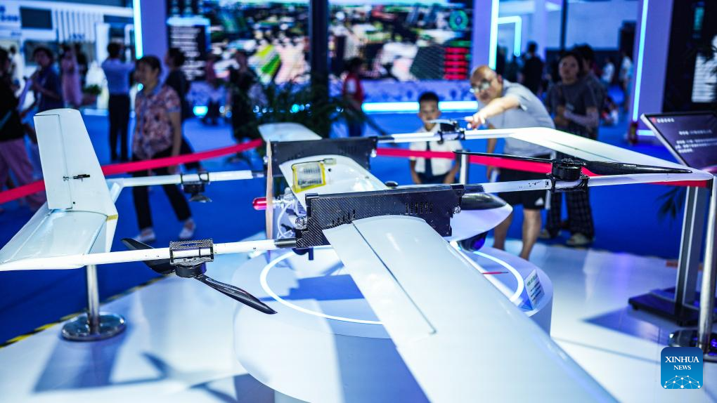 People visit the venue of the first Guizhou Science and Technology Festival in Guiyang, southwest China's Guizhou Province, Aug. 5, 2023. The first Guizhou Science and Technology Festival kicked off at Guiyang International Conference and Exhibition Center on Saturday and will last till Aug. 9. (Xinhua/Tao Liang)