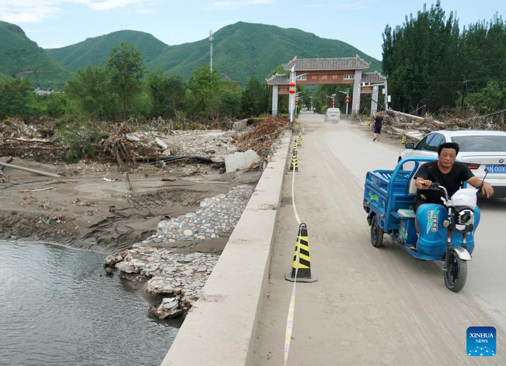 This photo taken on Aug. 5, 2023 shows a view of the Koutou Village of Qinglonghu Town in Fangshan District of Beijing, capital of China. As this round of typhoon-induced torrential rains have come to an end in Beijing, some villagers of Fangshan District, who had been evacuated to settlement sites due to heavy rainfall over the previous few days, returned home on Saturday after experts assessed the safety of their residences.