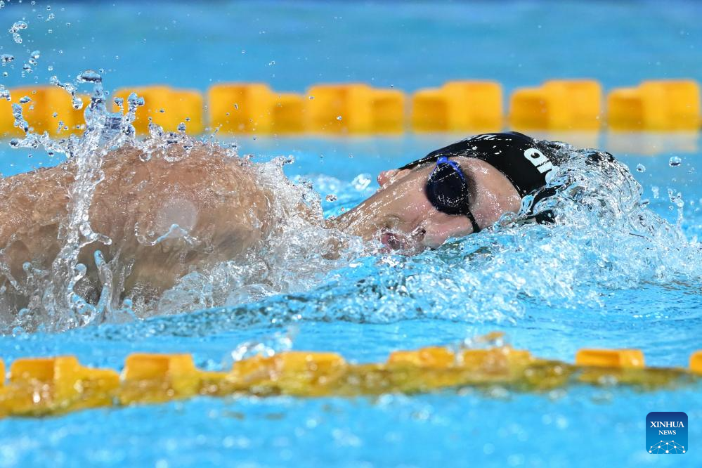 Matteo Lamberti of Italy competes during the swimming men's 800m freestyle final at the 31st FISU Summer World University Games in Chengdu, southwest China's Sichuan Province, Aug. 5, 2023. (Xinhua/Wu Gang)